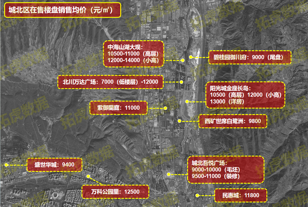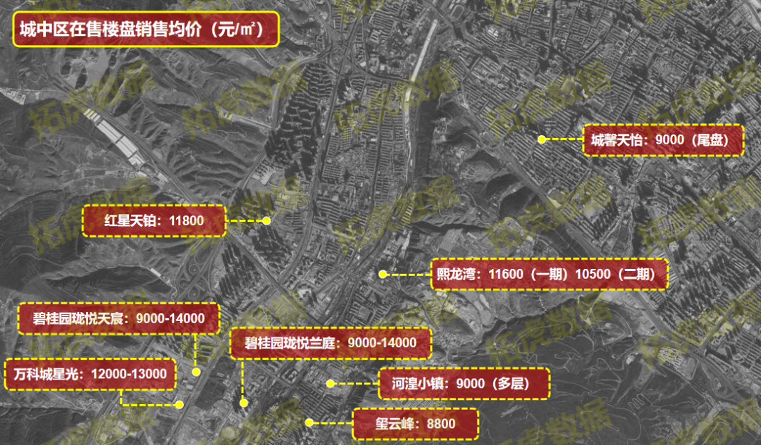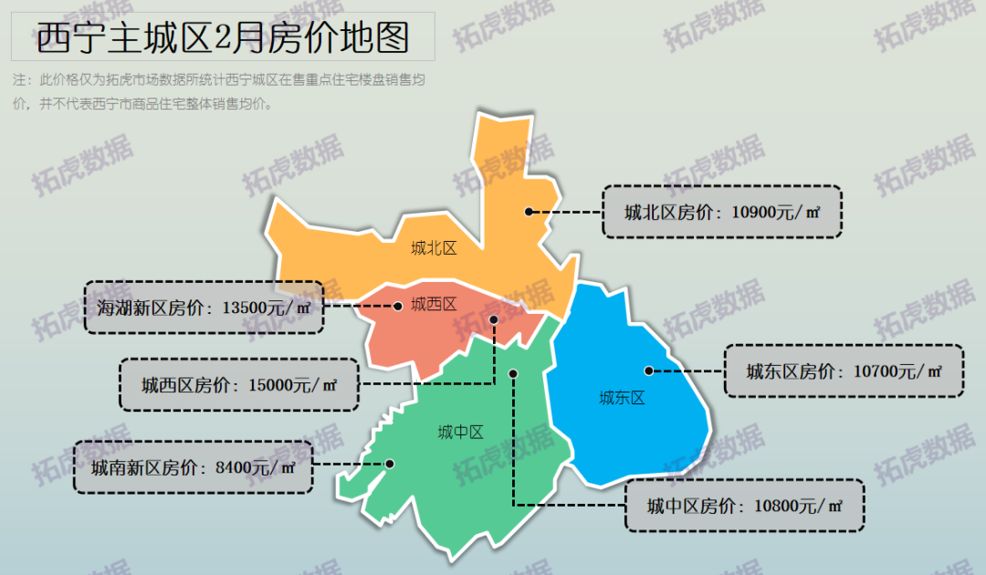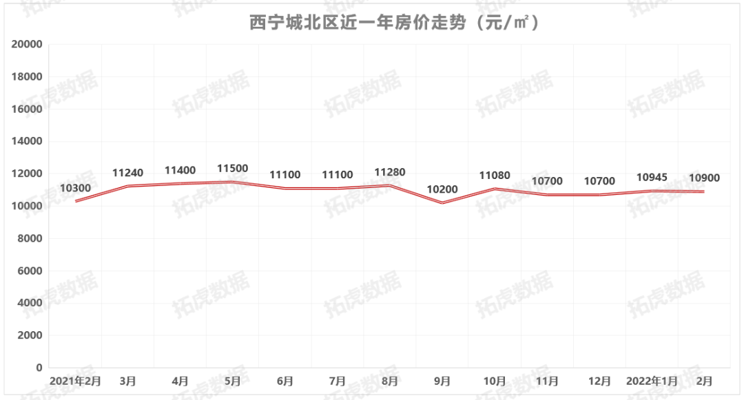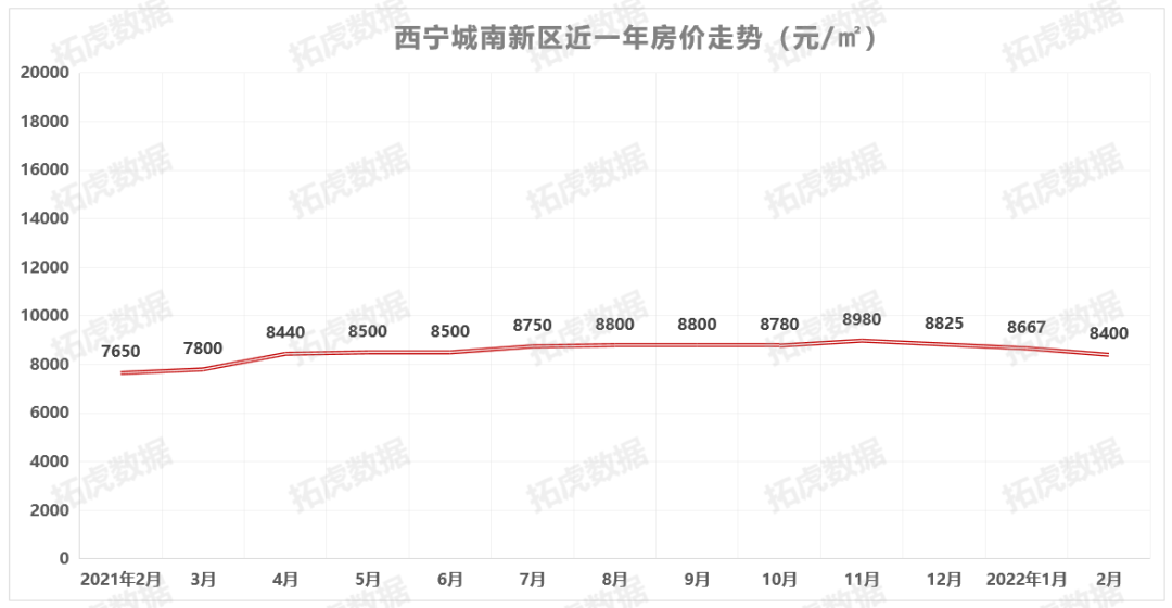 相关数据显示,西宁各板块在2021年12月期间的整体成交均价为10397元/㎡。而据拓虎市场数据统计,截至2022年2月7日,西宁城区在售重点住宅楼盘的销售均价为11550元/㎡(此销售均价不代表西宁市商品住宅整体销售均价)。