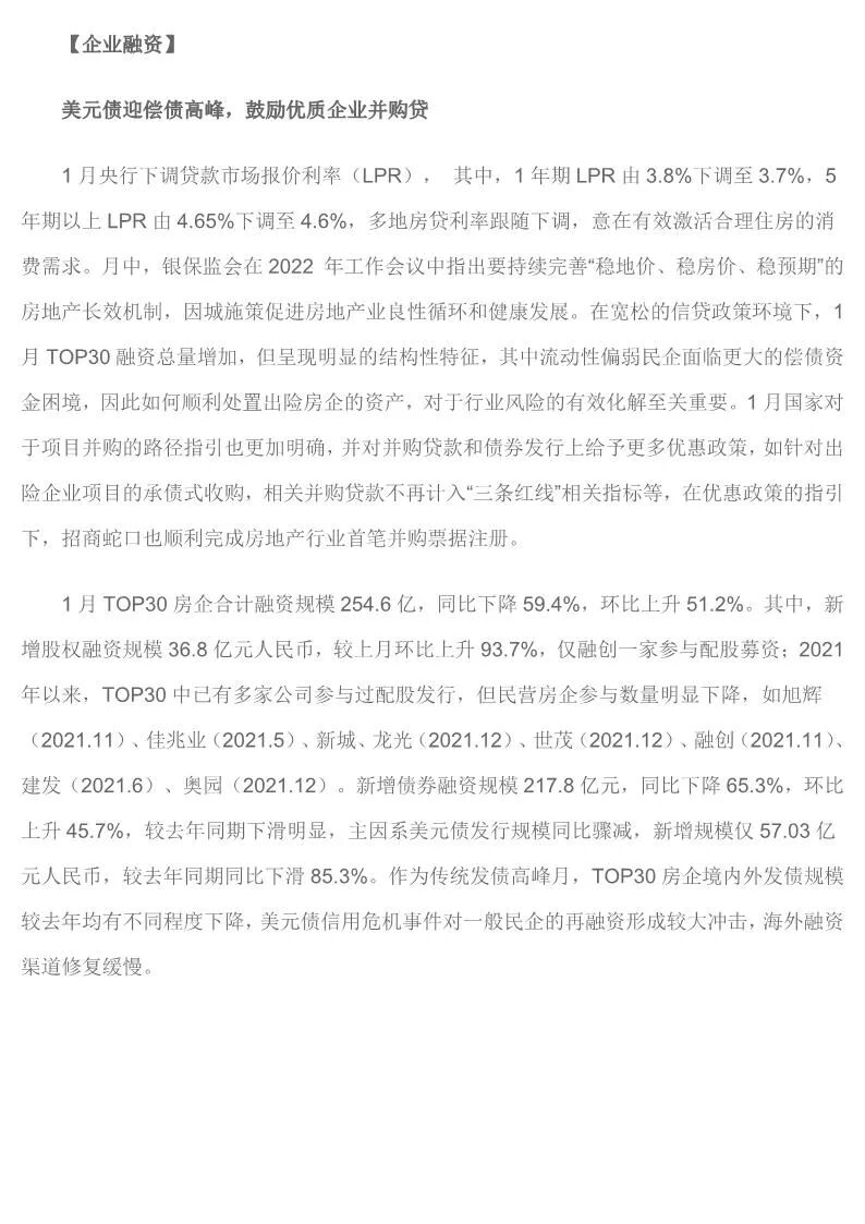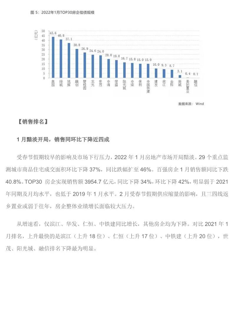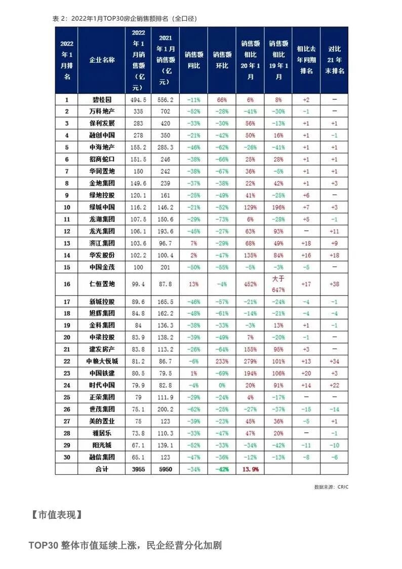 中国房企TOP30月报(2022年1月)