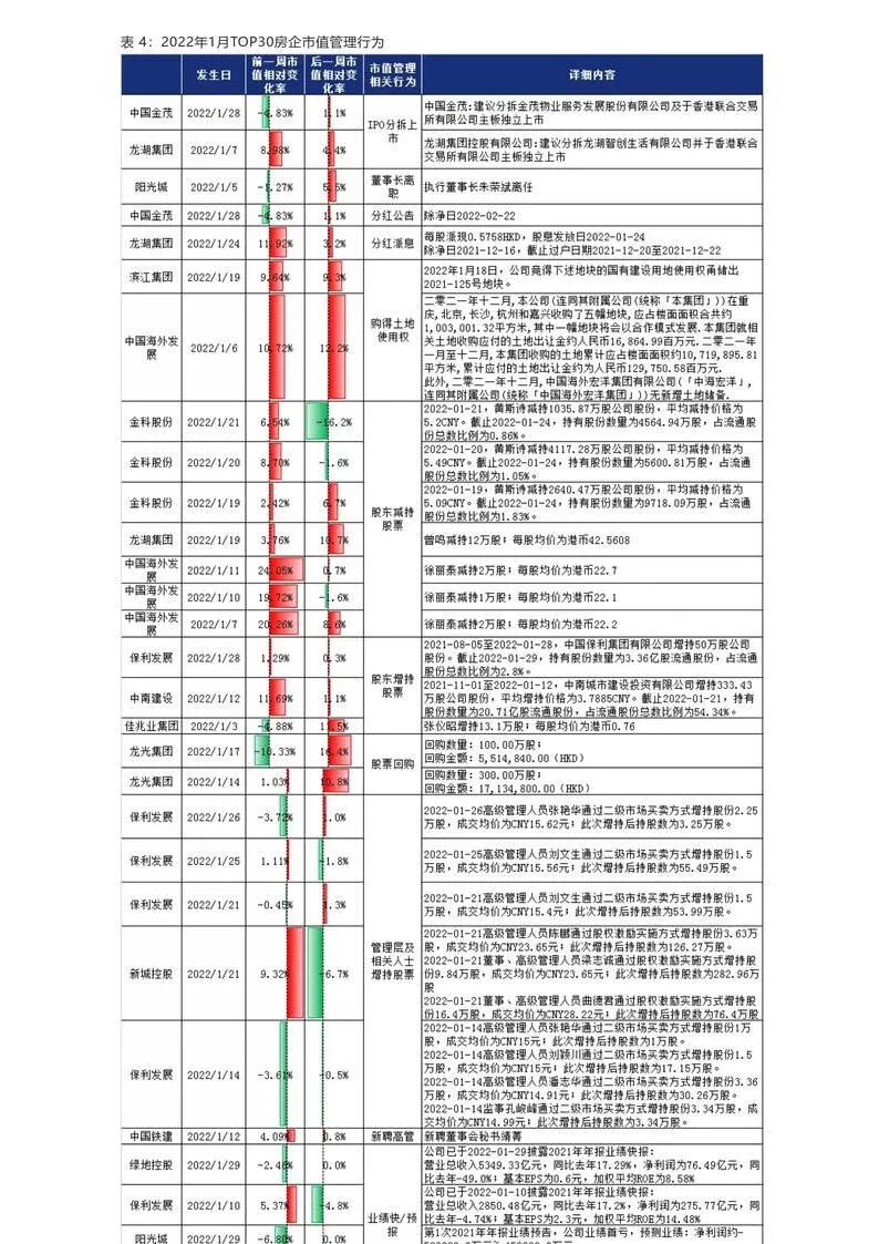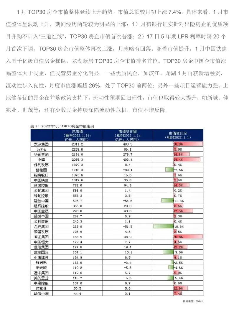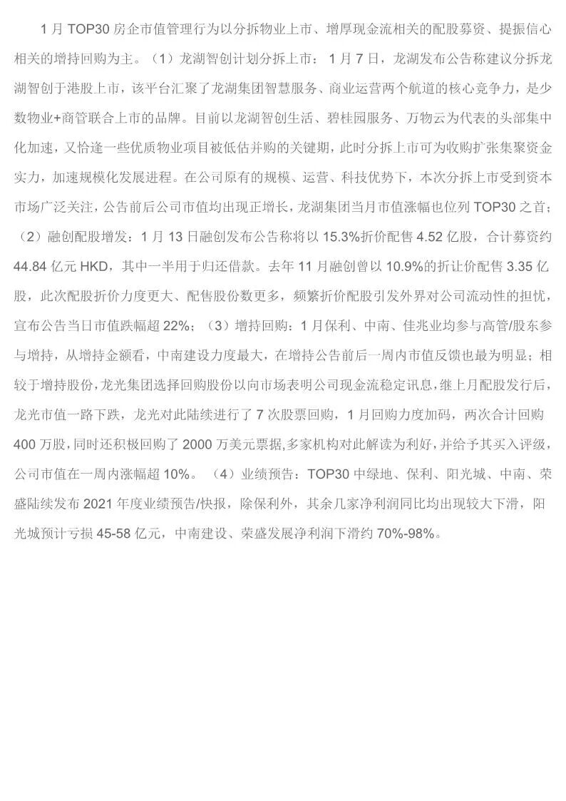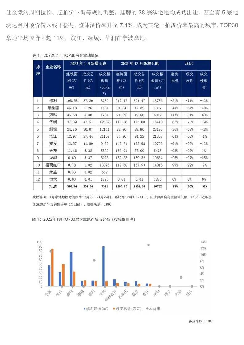 中国房企TOP30月报(2022年1月)