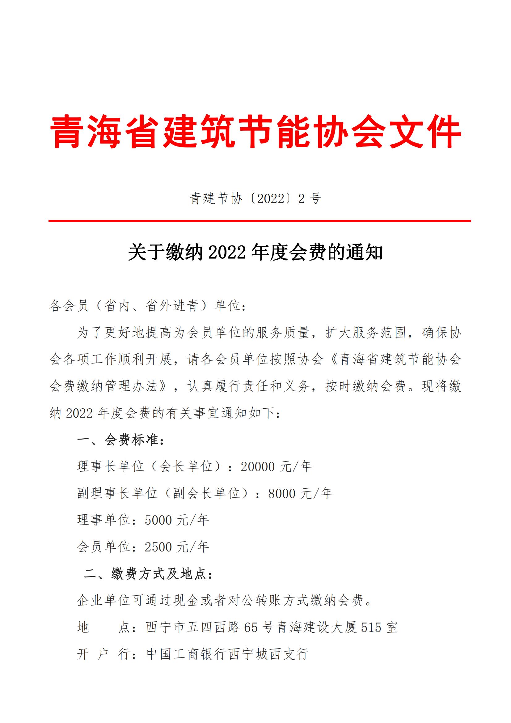 关于缴纳2022年度会费的通知