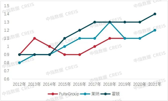 图:美国头部房企资产周转率变化情况