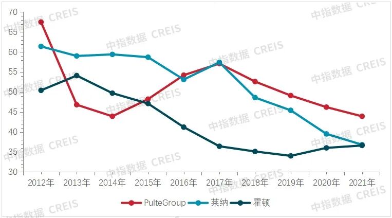 图:美国头部房企资产负债率变化情况