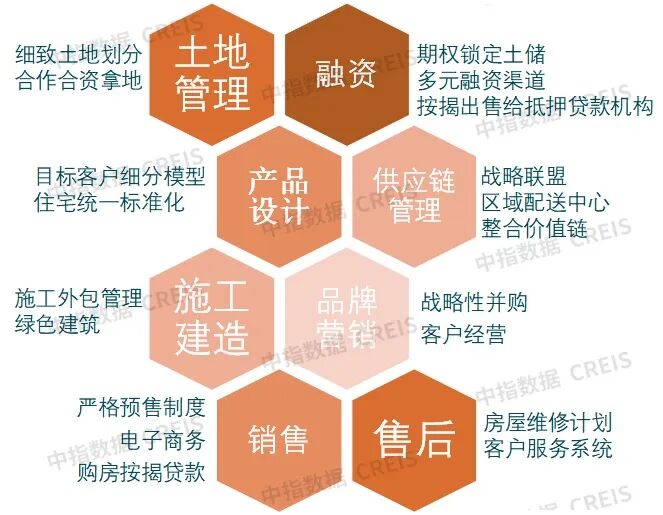 以美国住宅建筑商中资产规模和市值最大的莱纳、帕尔迪、霍顿为例,坚定以住宅开发作为业务核心。增量阶段房企住宅开发的核心竞争力是规模和速度,增量存量并存阶段房企的核心竞争力是市场空间布局和产品变革创新。一方面,以层级更高、大经济圈的城市作为投资开发核心以确保企业资金流动性。另一方面,以客户需求为导向的产品意识成为房企经营的新的战略重心。这一模式的特点是:专业化、低杠杆、高周转。