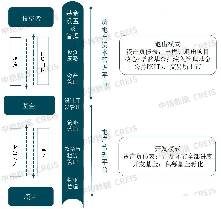 在政府指导下,新加坡房企实践出一条融合开发和投资的转型升级之路。以凯德集团为例,通过私募基金与传统开发经营为项目提供了资金基础和组合技术,而REITs为前期投资提供了退出机制,最终实现了对区域性地产机会的全盘把握。这一模式的特点是:双基金模式、运营管理能力