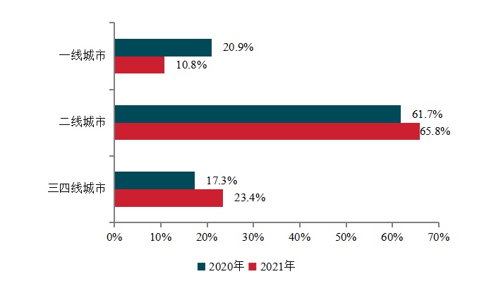 中国房地产101-200强代表企业2020、2021年拿地面积城市等级