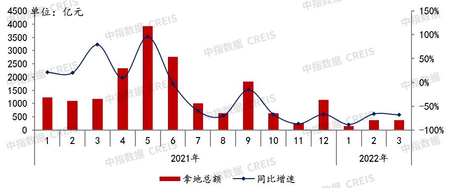 图:2021-2022年3月50家代表房企每月拿地总额