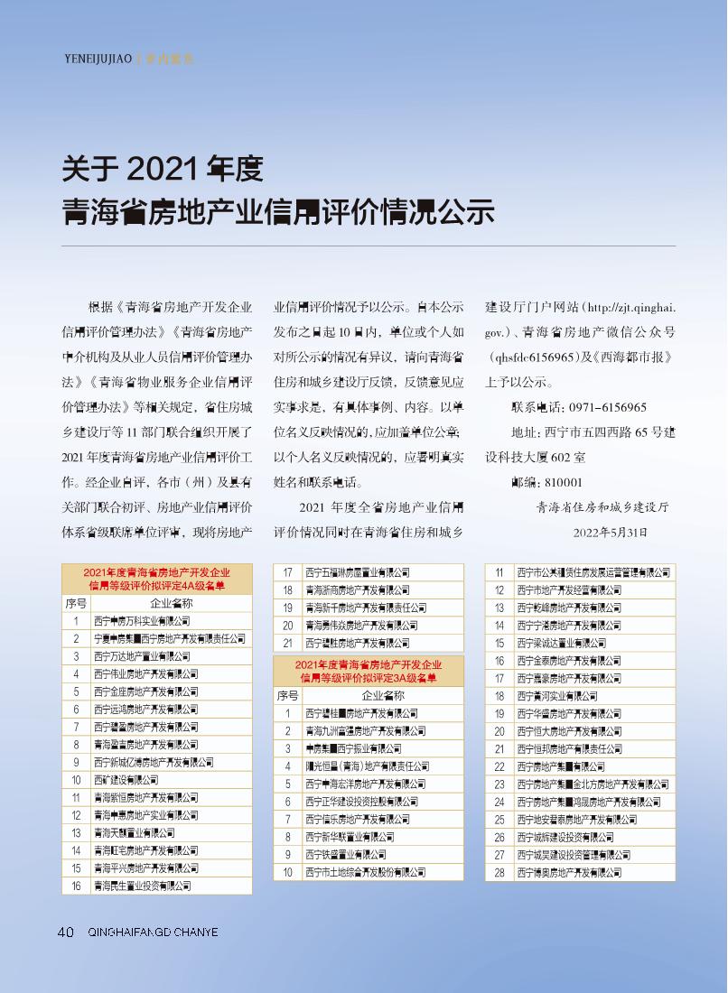 青海房地产业 2022年1期