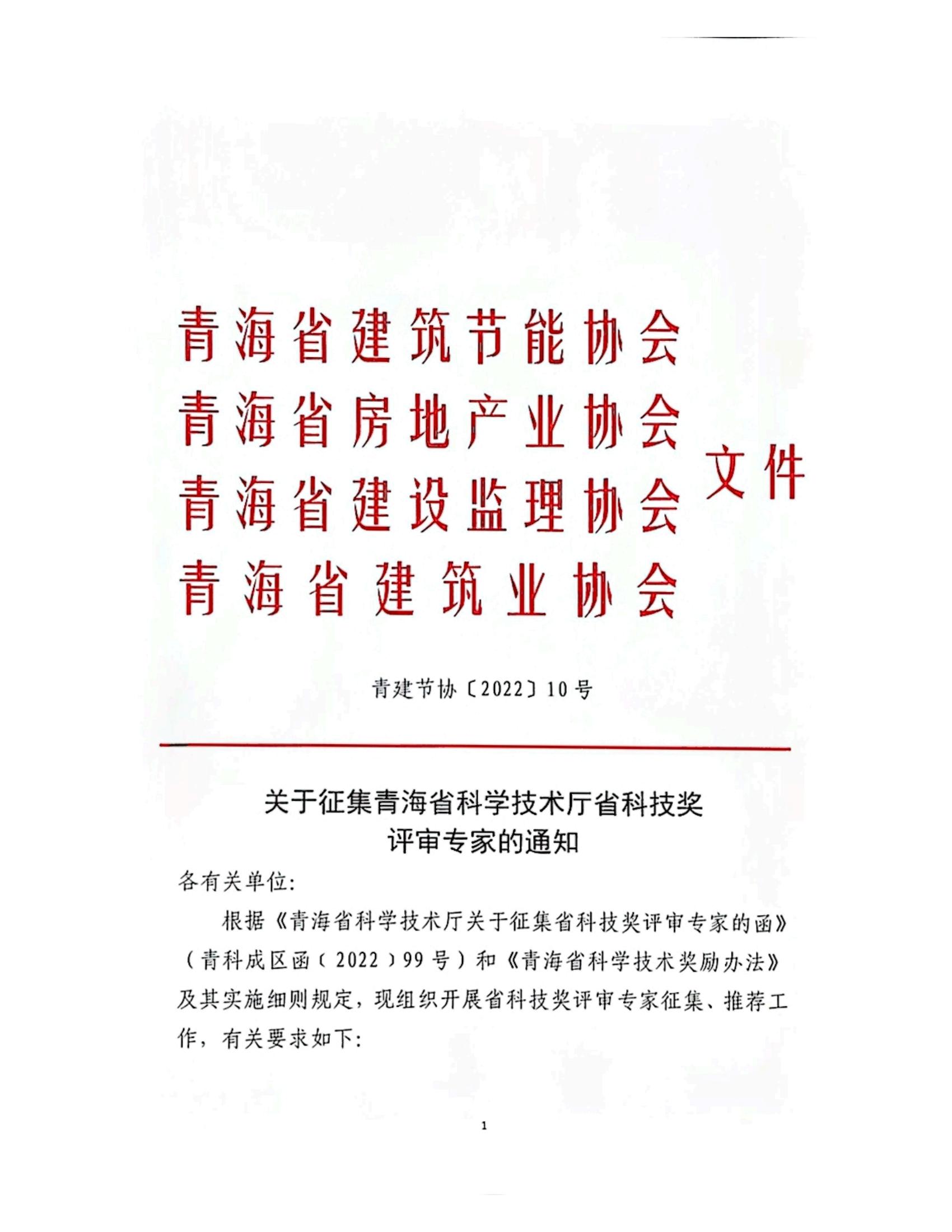 关于征集青海省科学技术厅省科技奖评审专家的通知