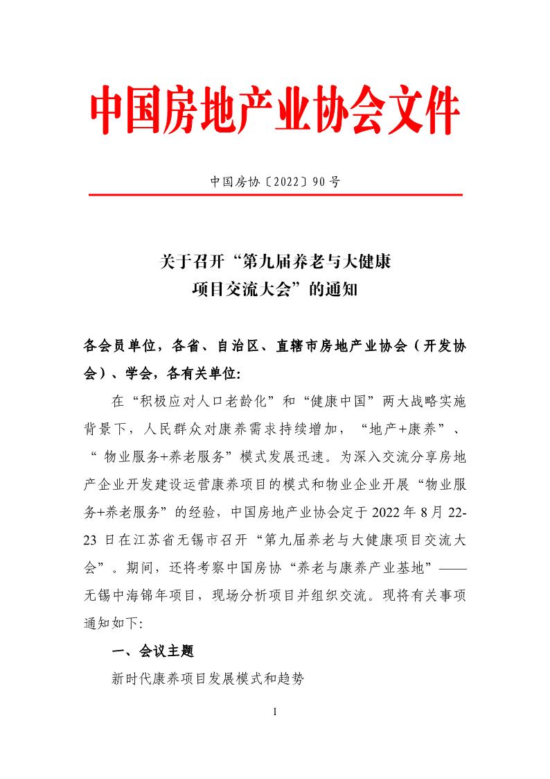 关于召开“第九届养老与大健康项目交流大会”的通知