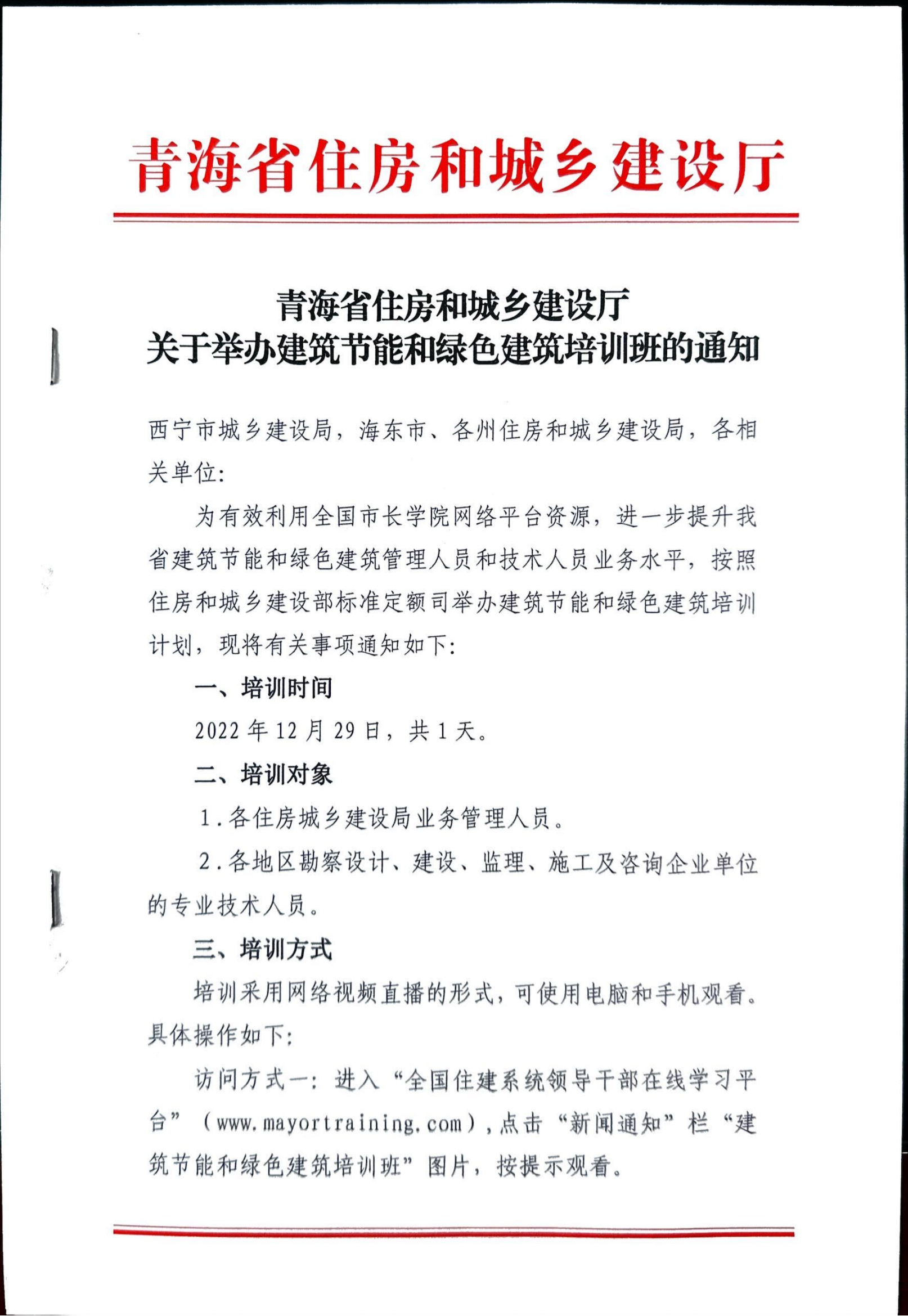 转发丨青海省住房和城乡建设厅关于举办建筑节能和绿色建筑培训班的通知