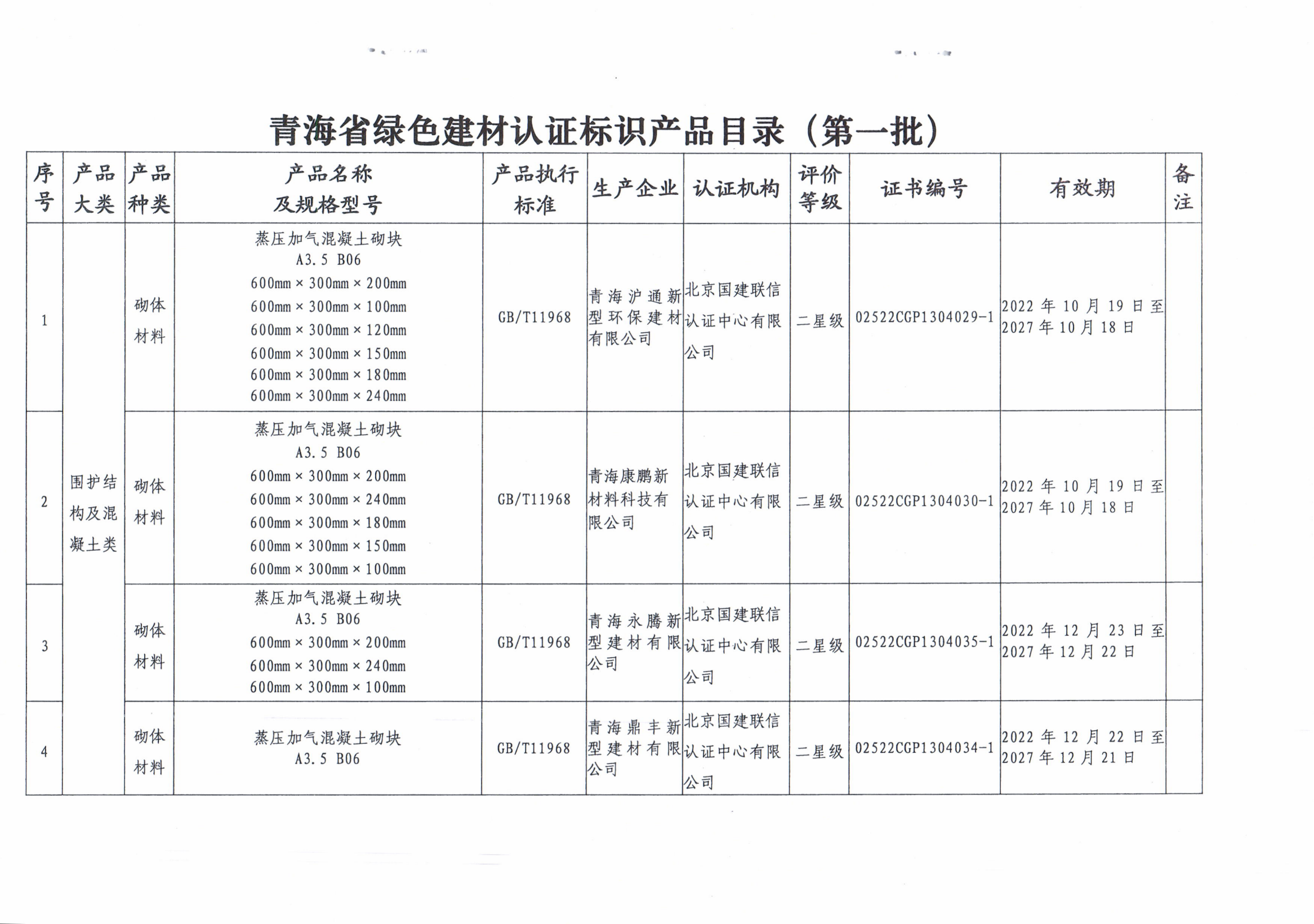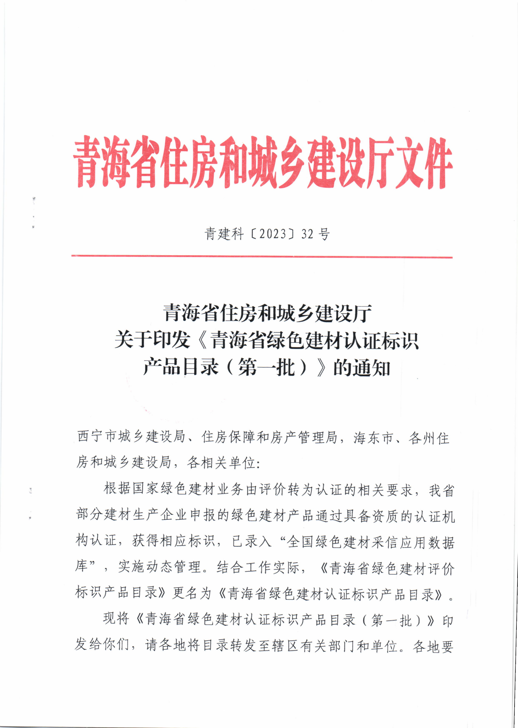 关于印发青海省绿色建材认证标识产品目录(第一批)的通知