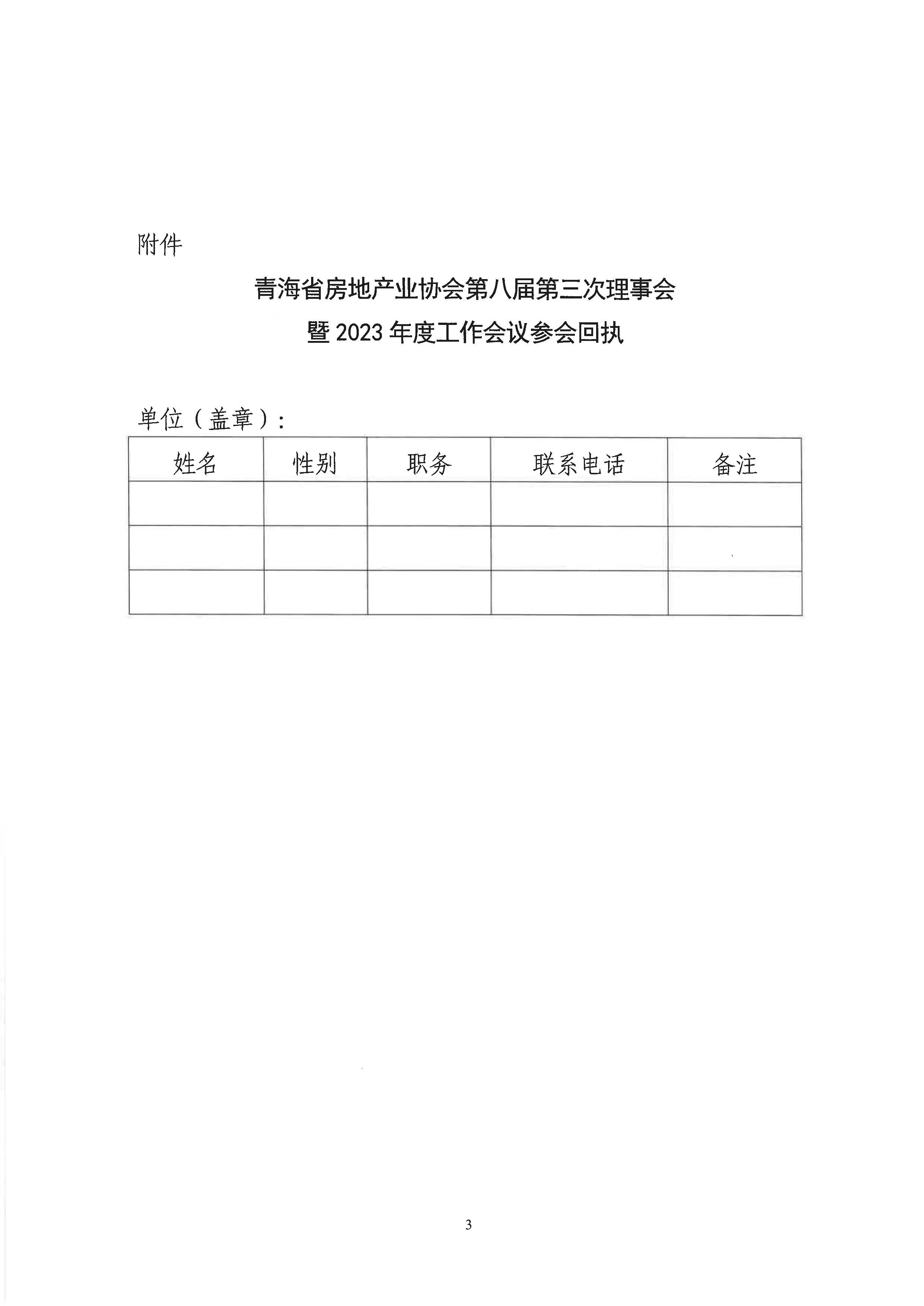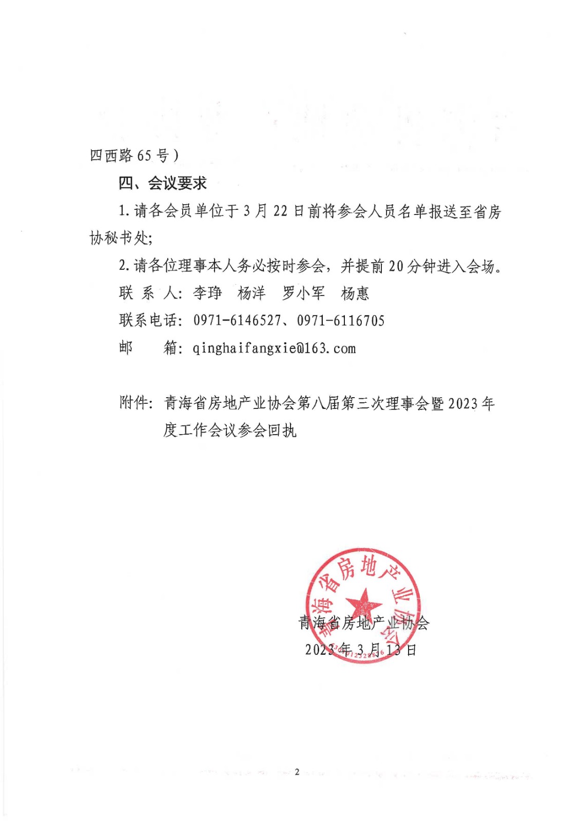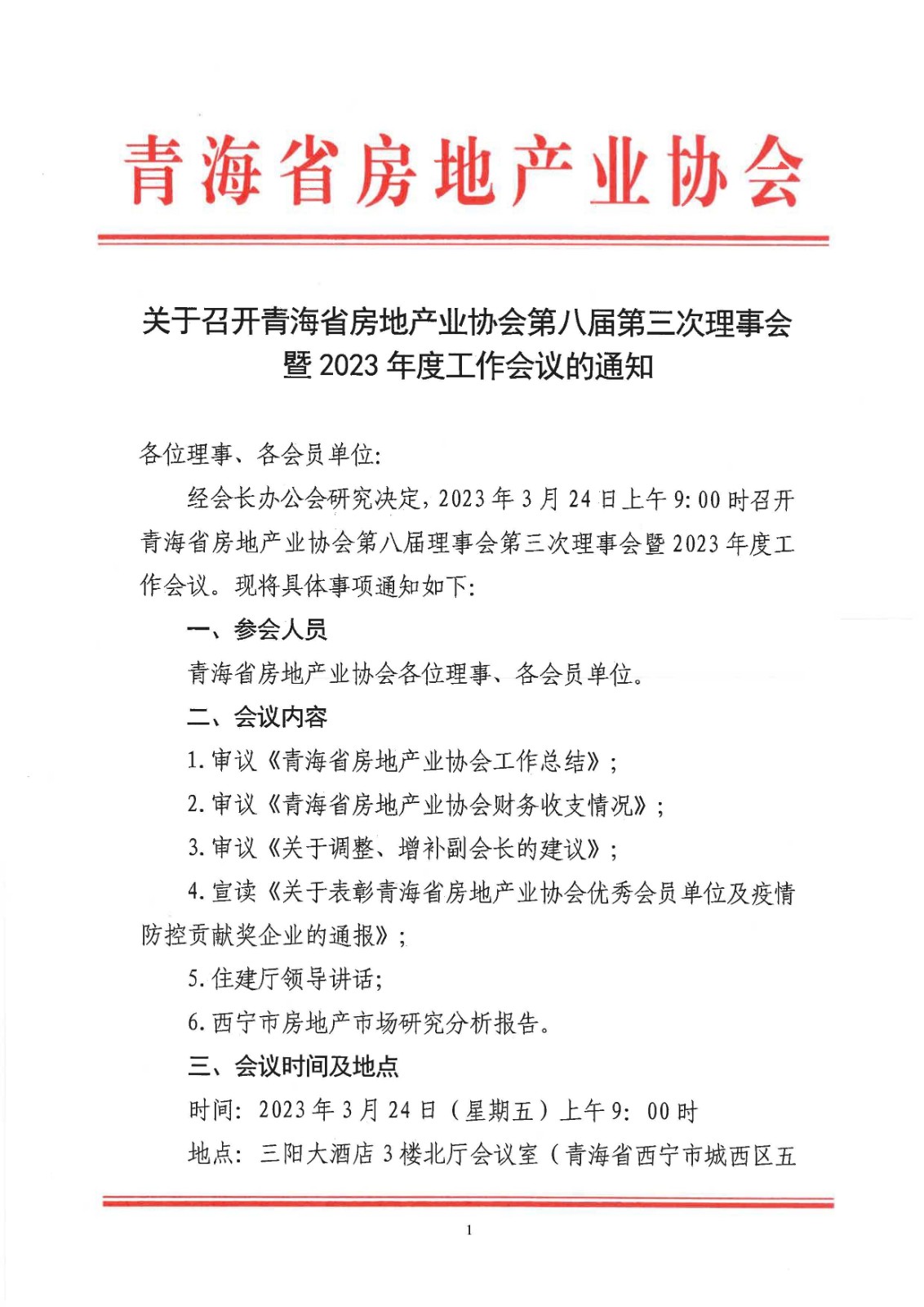 关于召开青海省房地产业协会第八届第三次理事会暨2023年度工作会议的通知
