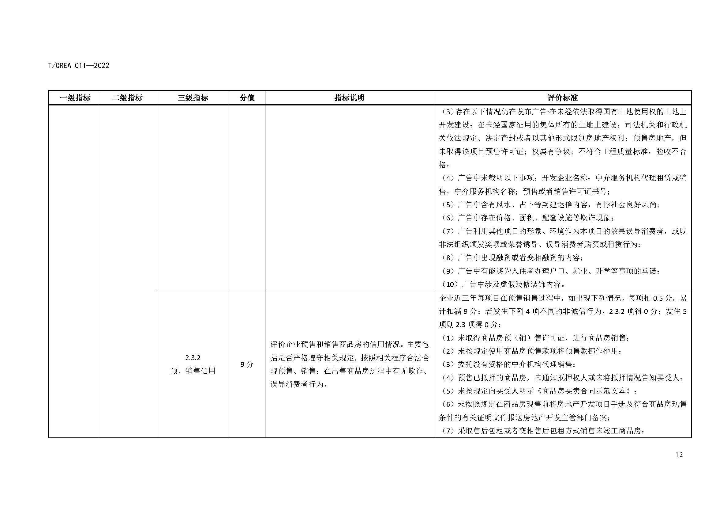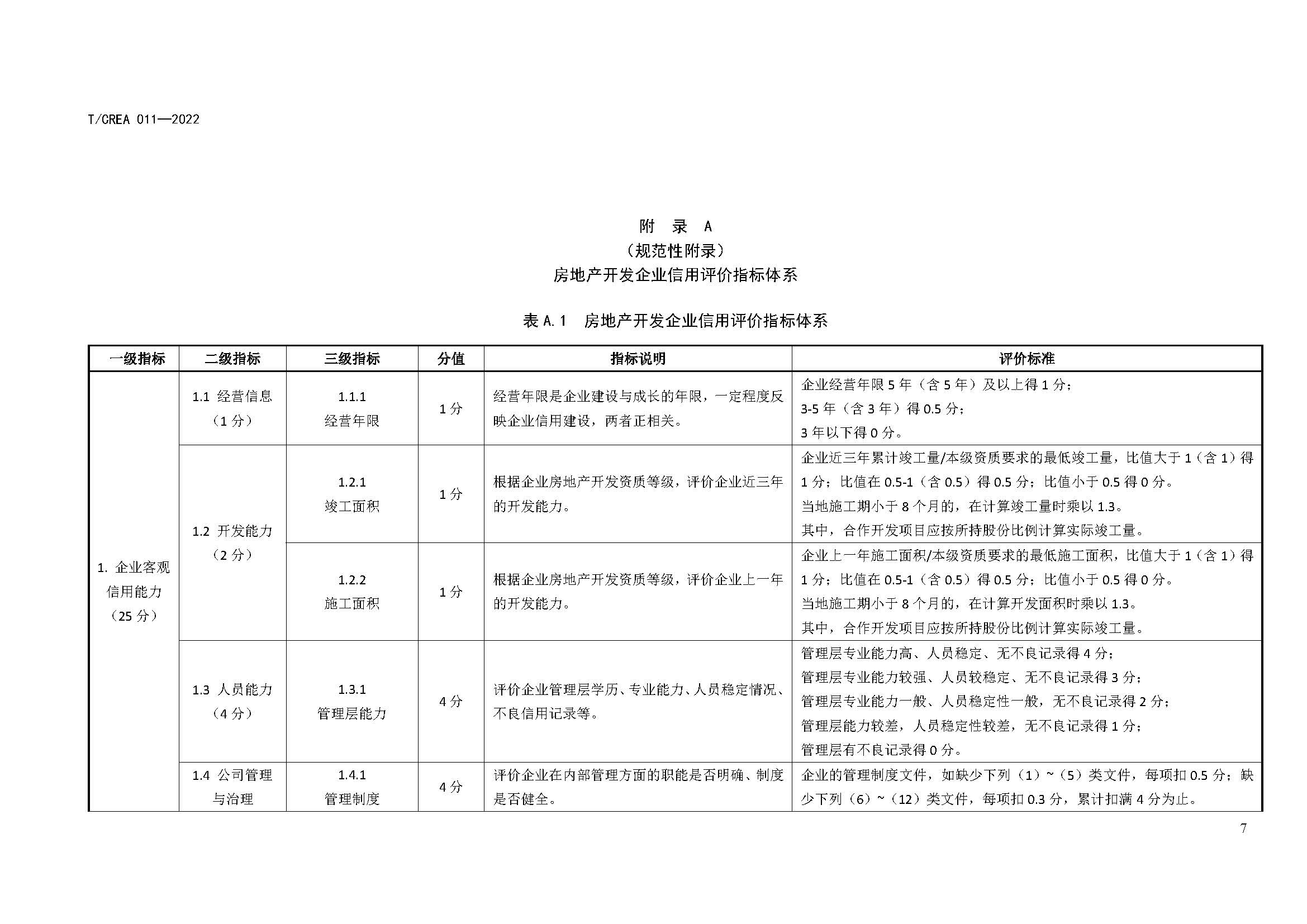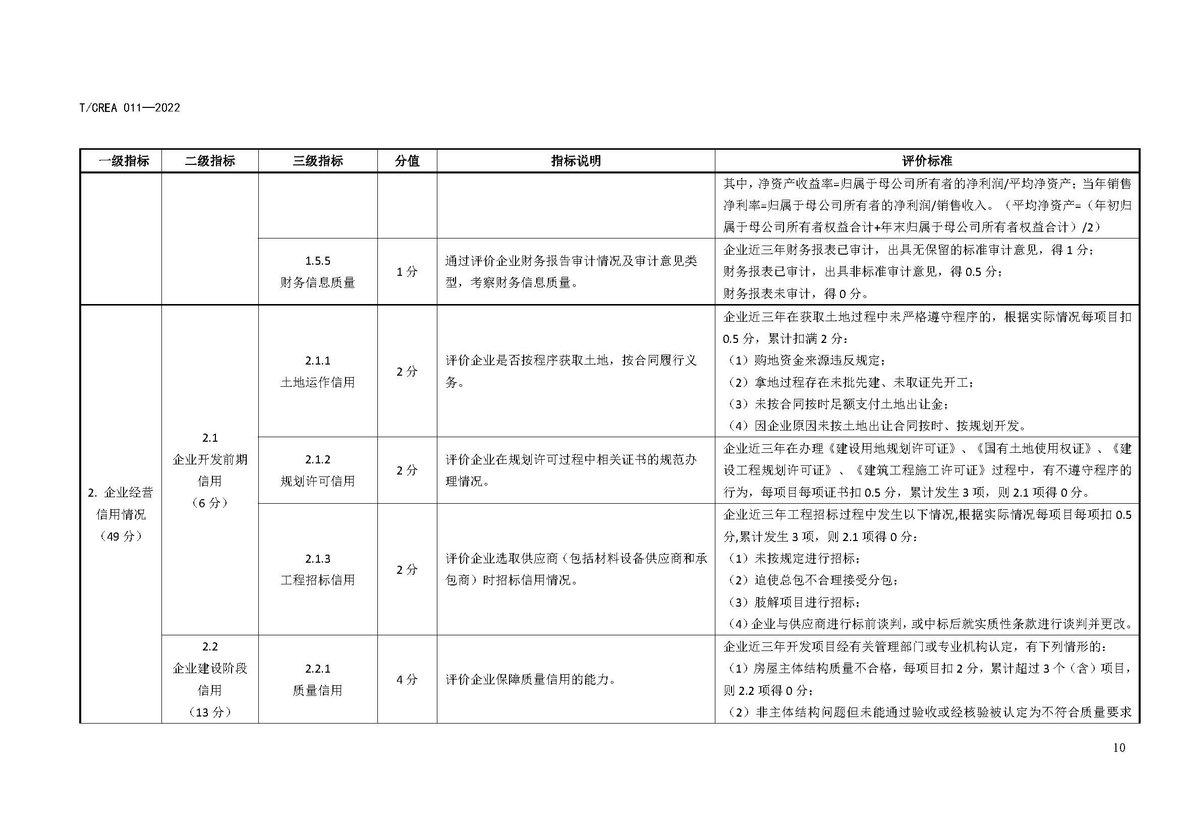 《房地产开发企业信用评价标准》(规范性附录)(T/CREA011-2022)