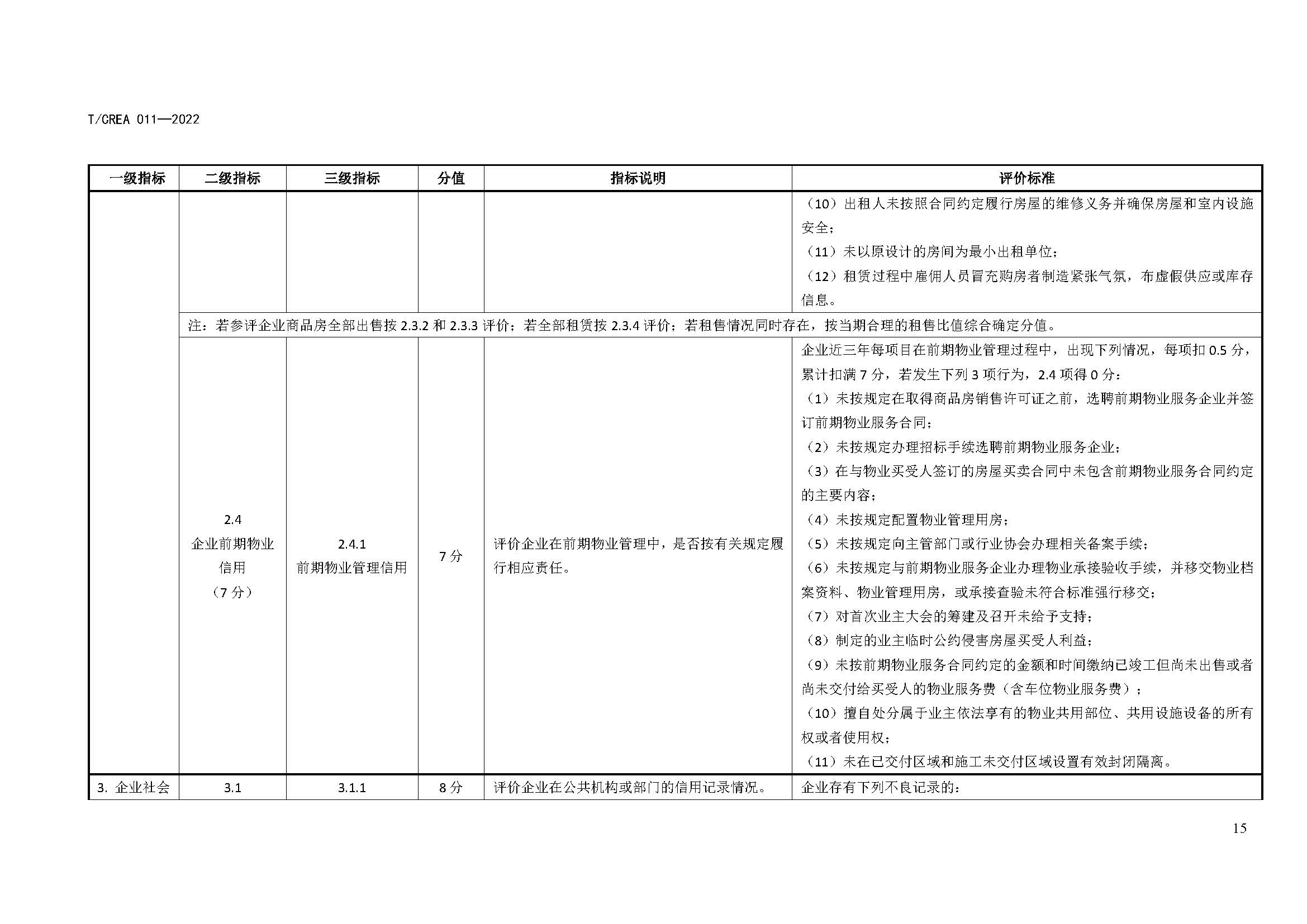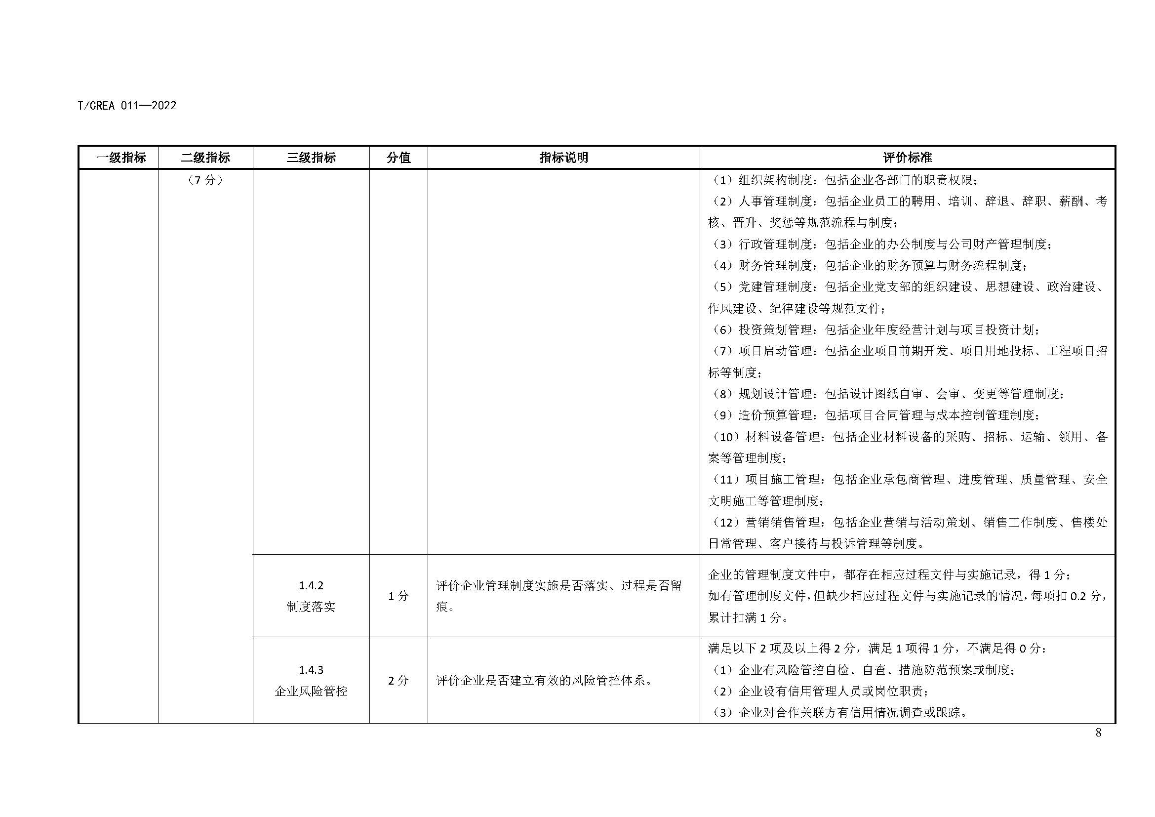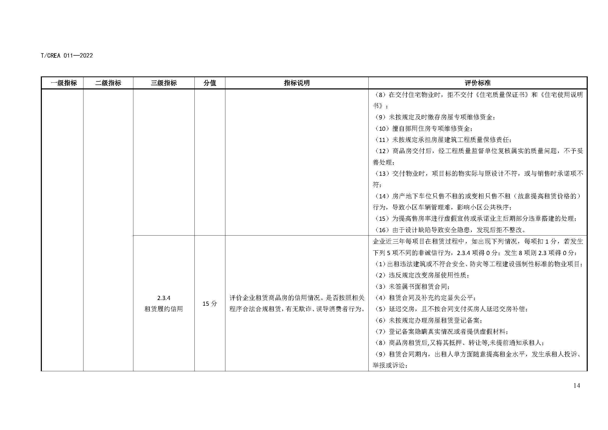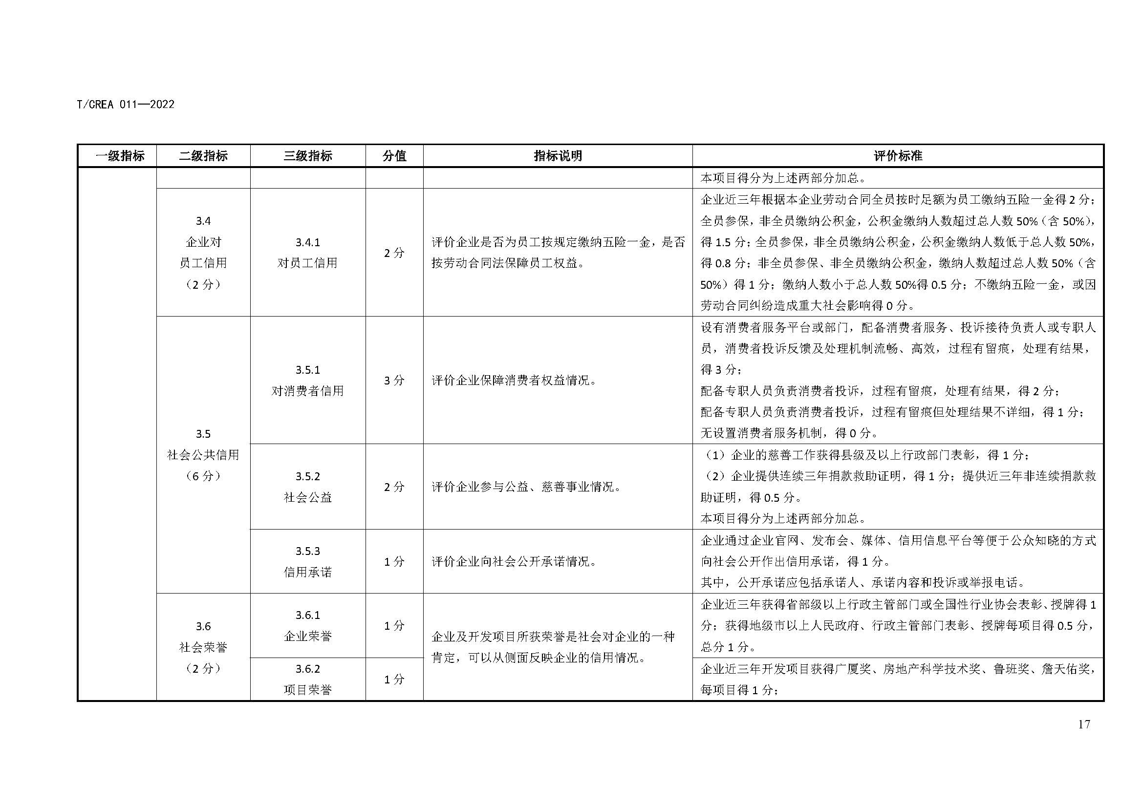 《房地产开发企业信用评价标准》(规范性附录)(T/CREA011-2022)