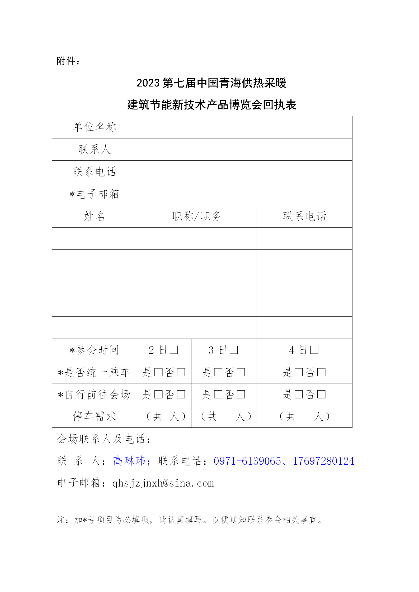 2023第七届中国青海供热采暖建筑节能新技术产品博览会回执表