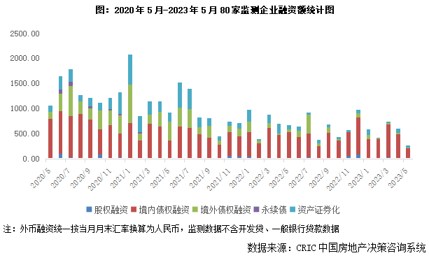 但居民购房贷款需求依然偏弱、房企整体融资环境仍不容乐观。1-5月各月住户中长期贷款占新增境内人民币贷款的比重始终处在20%以下低位。前5月80家典型房企的累计融资总量为2623.7亿元,同比减少27.3%,5月,典型房企融资规模环比减少56.4%,同比减少60.4%,并创下了2020年以来单月新低。
