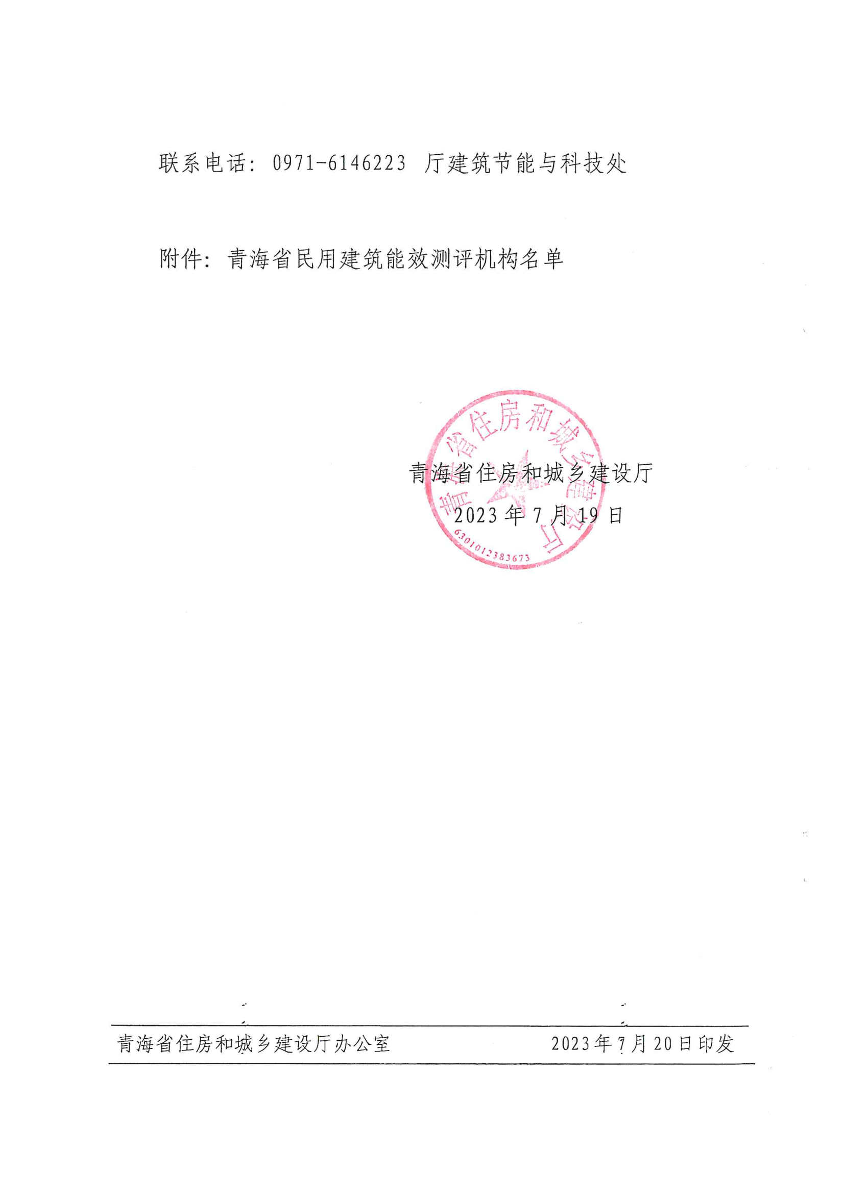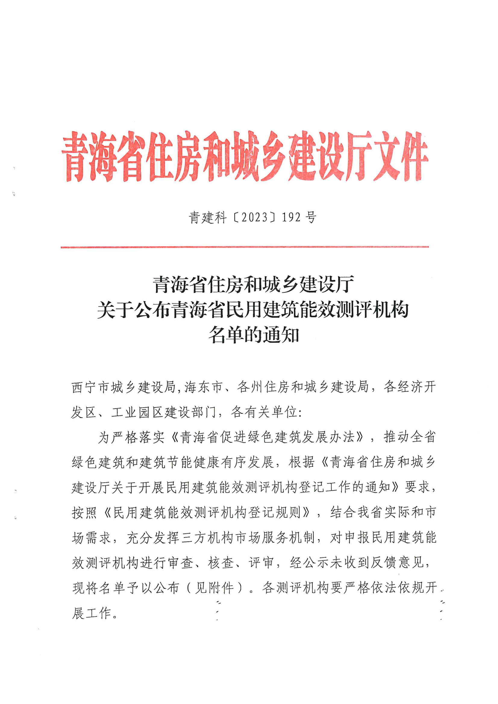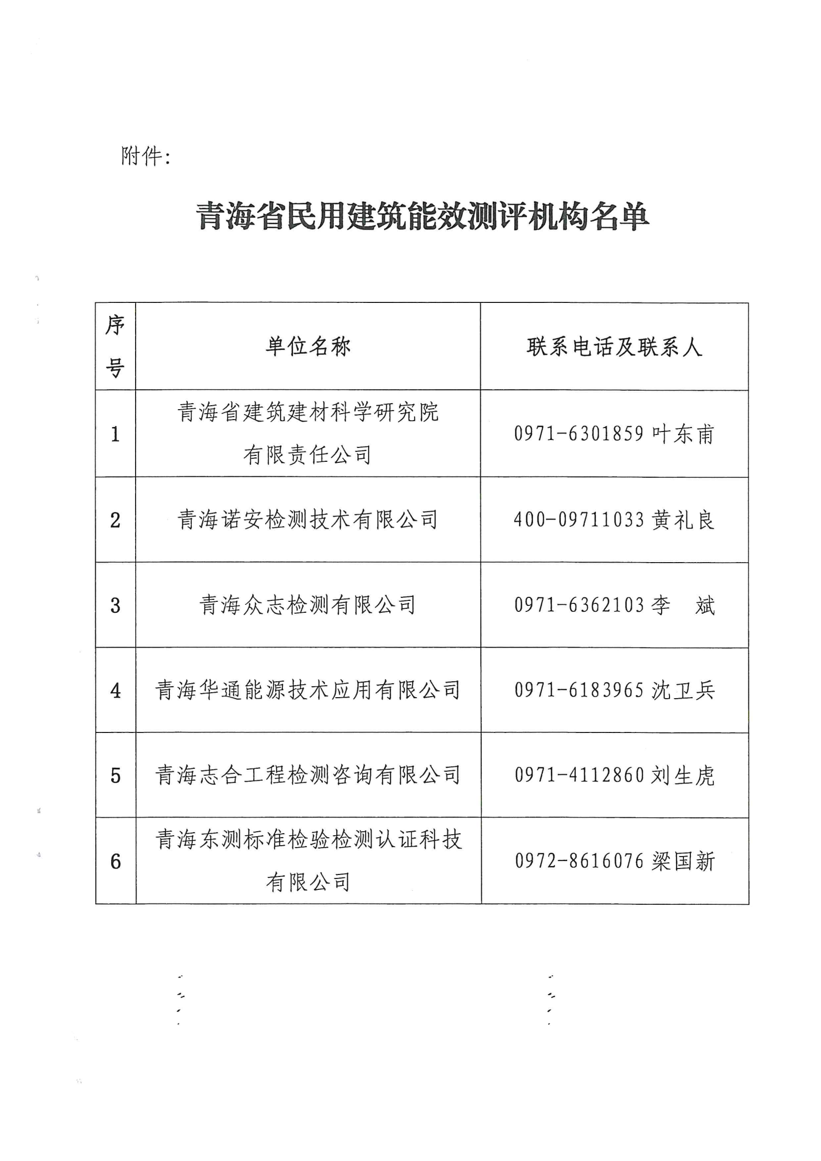 青海省住房和城乡建设厅关于公布青海省民用建筑效能测评机构名单的通知
