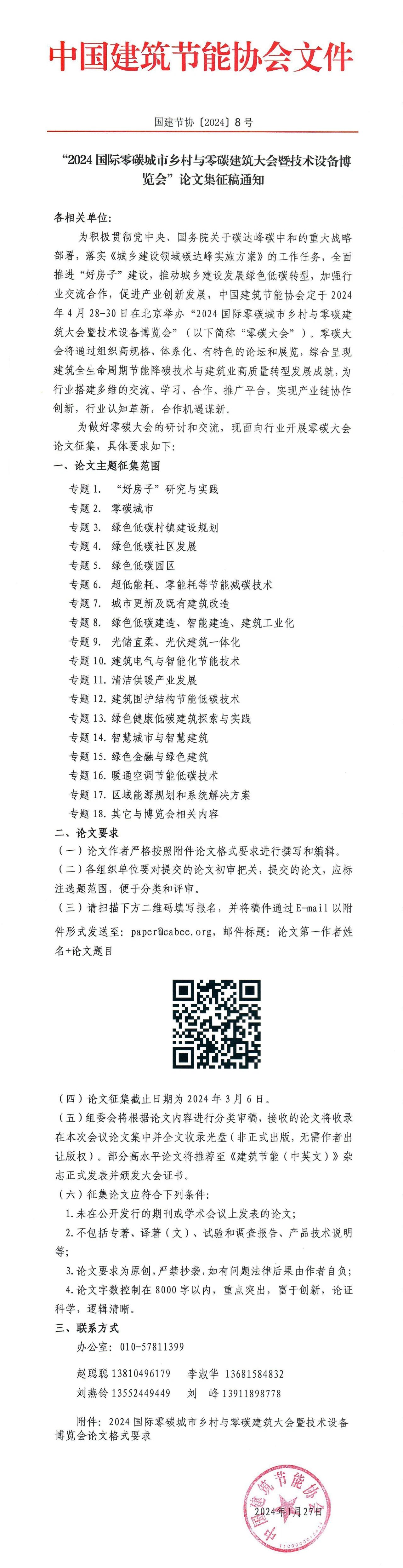 2024国际零碳城市乡村与零碳建筑大会暨技术设备博览会”论文集征稿通知