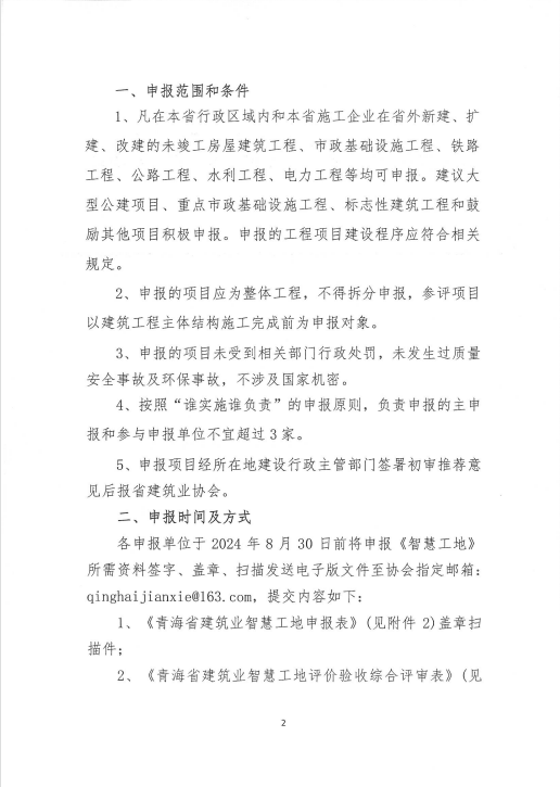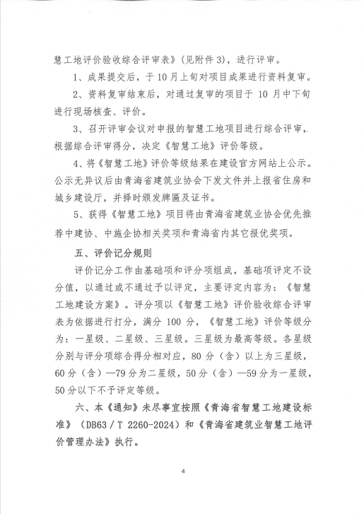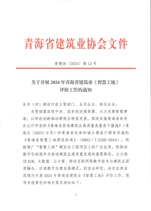 关于开展2024年青海省建筑业《智慧工地》 评价工作的通知