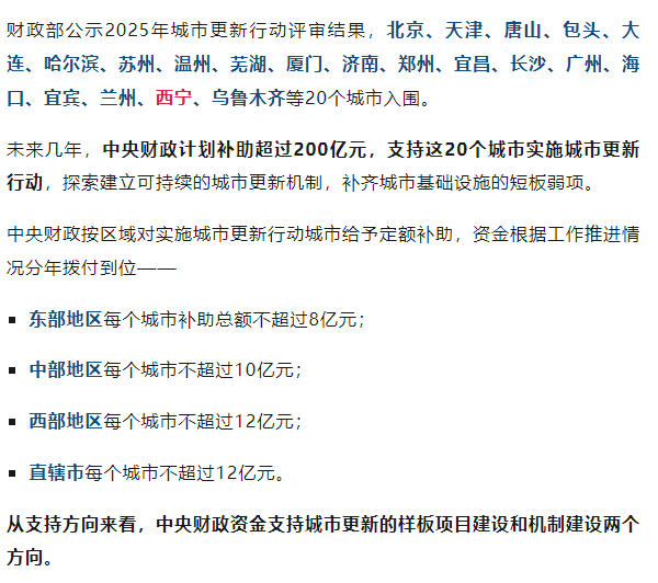 西宁入围,中央财政拟支持!