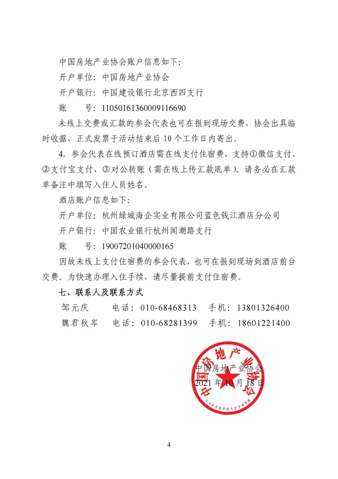 为更好地服务会员单位,促进房地产企业向高质量、数字化快速转型,学习品牌企业的高品质住宅标准化管理体系及科学的运营模式,中国房地产业协会定于 2021 年 11 月 11-12 日在浙江省杭州市召开“数字地产、智慧建筑”创新发展论坛暨走进品牌企业交流活动。 可现场聆听市场形势与转型升级,绿城、滨江、万科等房企分享企业高品质发展及标准化内部管理体系;请有意向参加的会员单位于10月30日前按文件要求扫码报名缴费,报名缴费成功后报青海省房协秘书处,感谢您的支持与合作!
