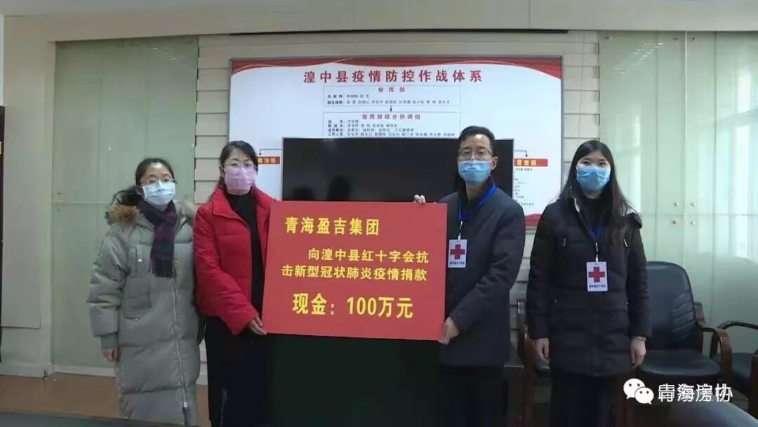青海盈吉建筑集团 向湟中县红十字会捐款100万元。