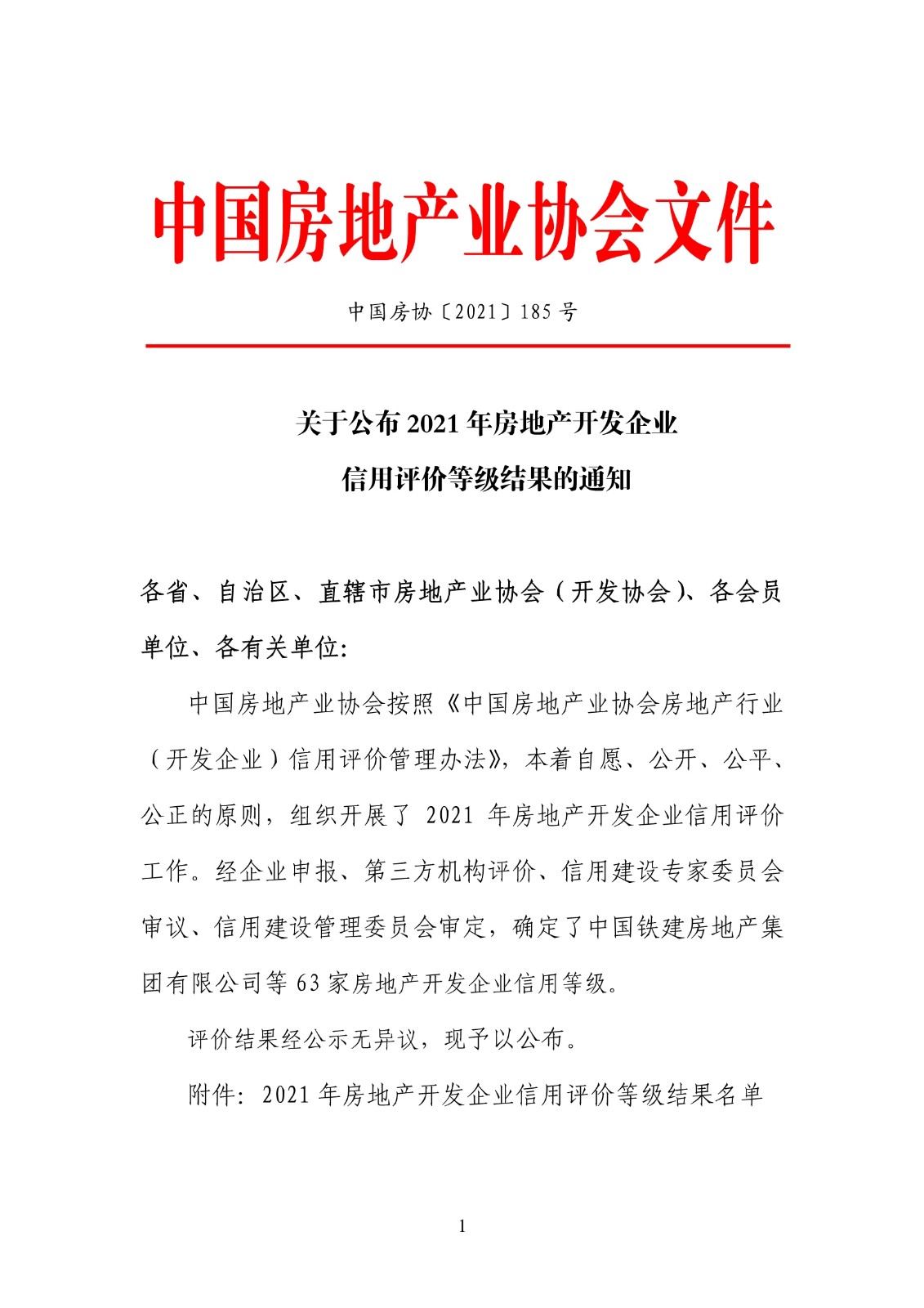 关于公布2021年房地产开发企业信用评价等级结果的通知