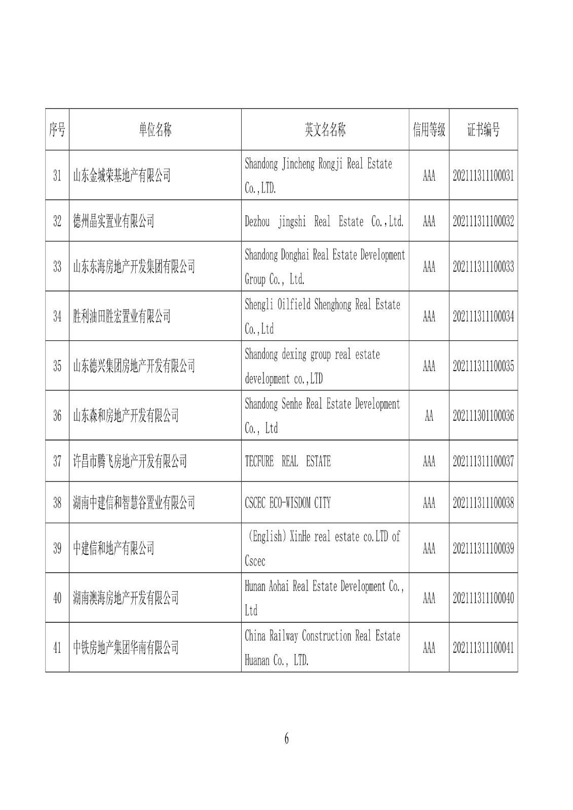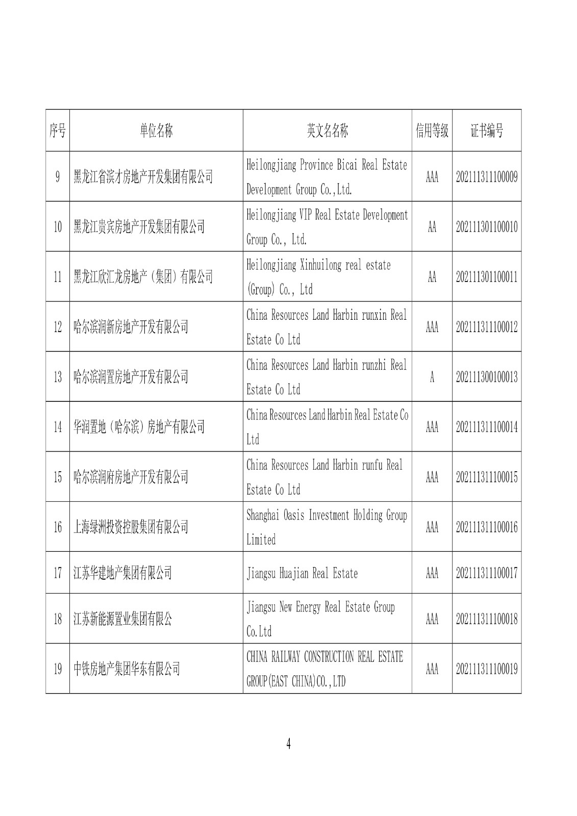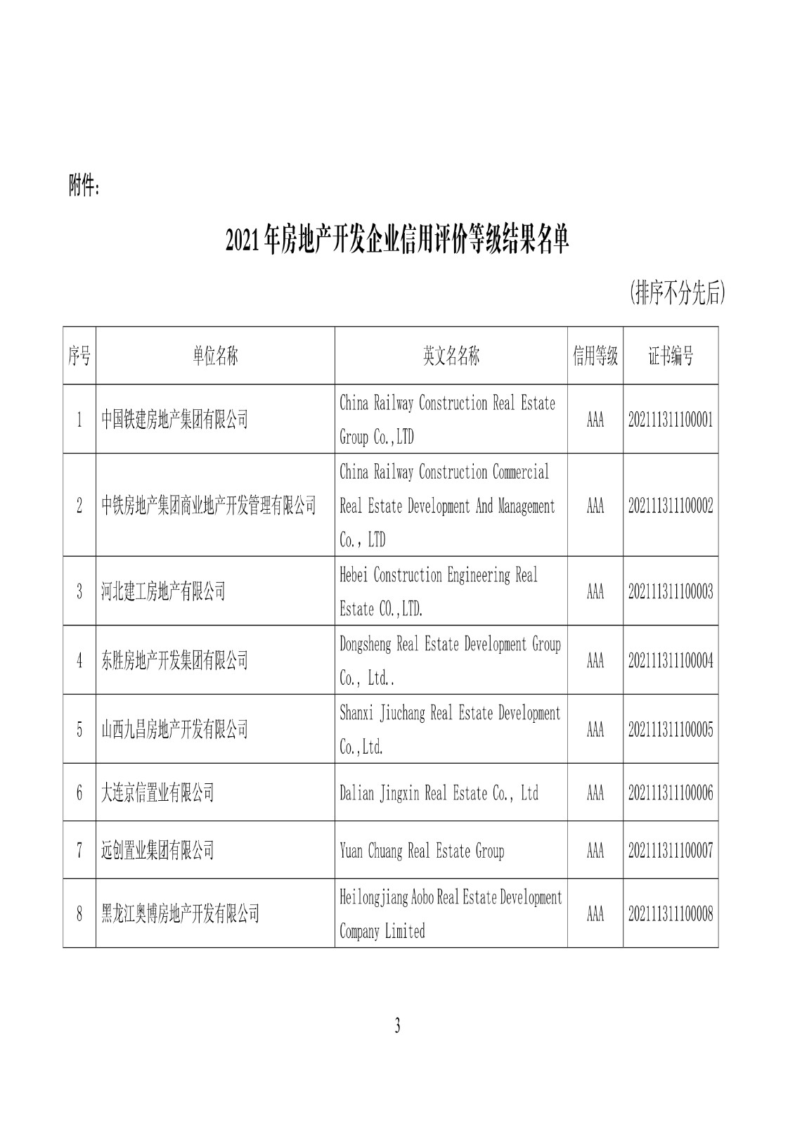 关于公布2021年房地产开发企业信用等级动态监测结果的通知