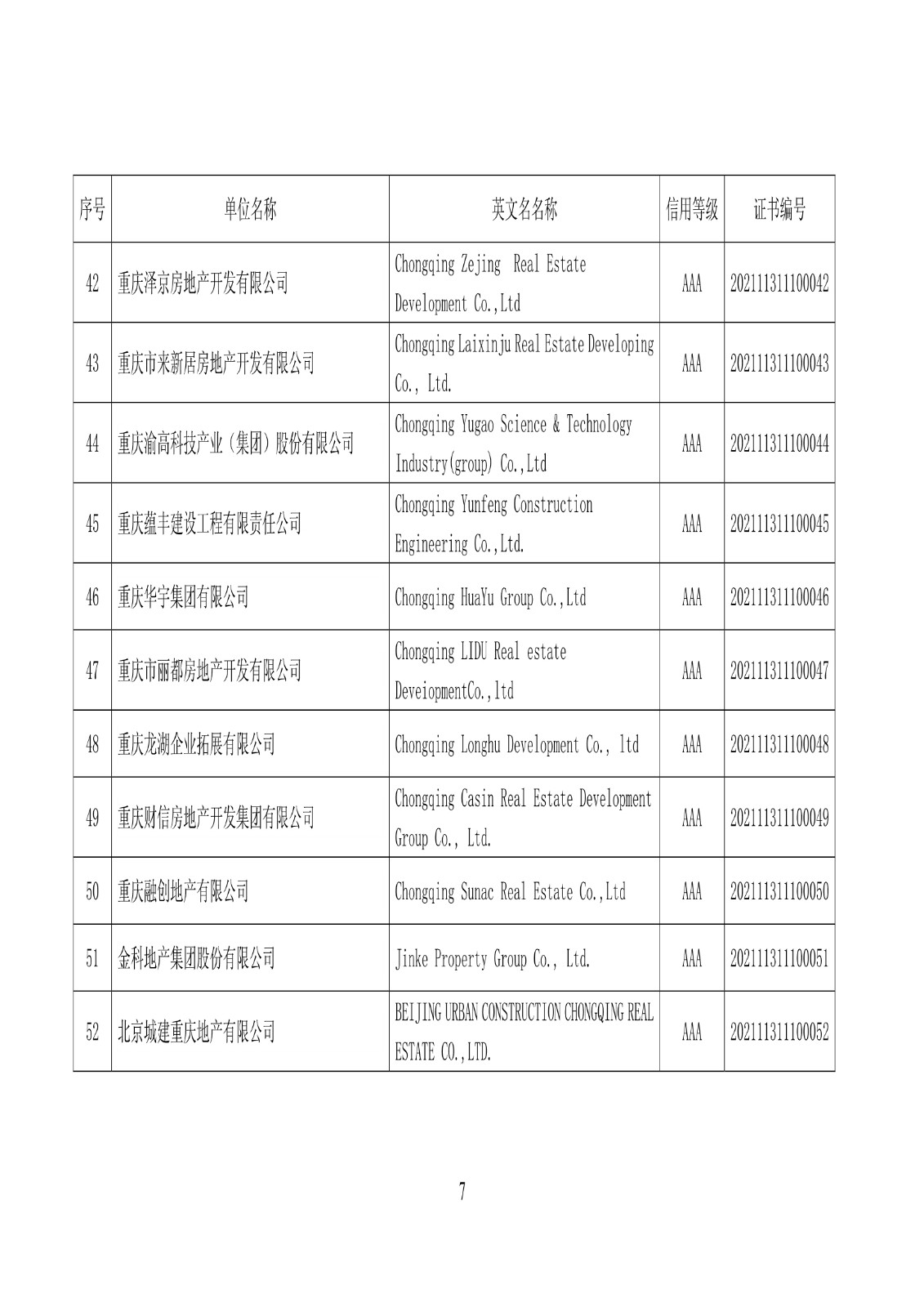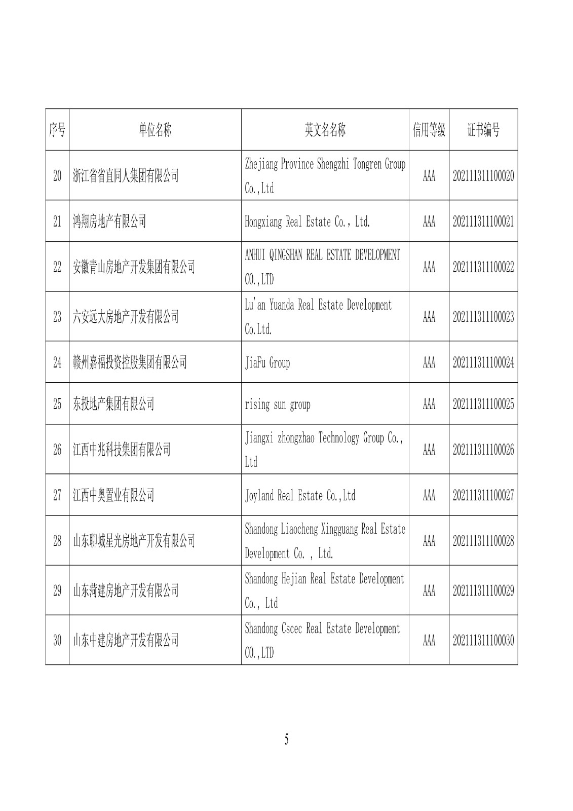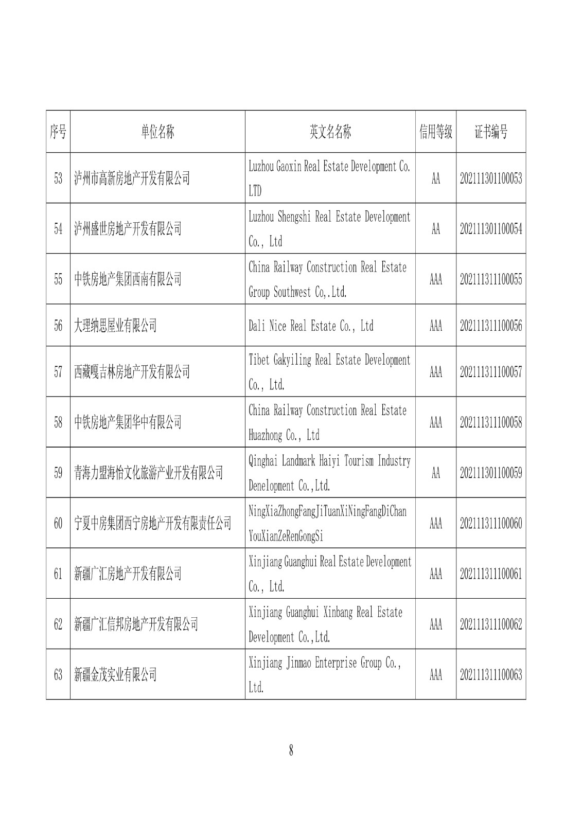 关于公布2021年房地产开发企业信用等级动态监测结果的通知