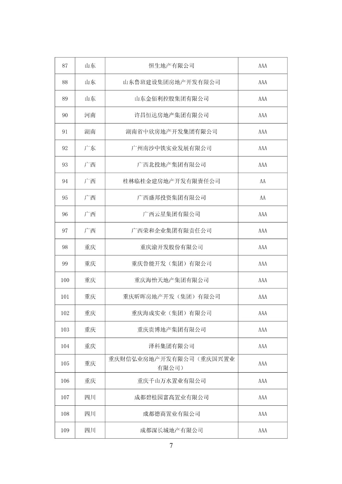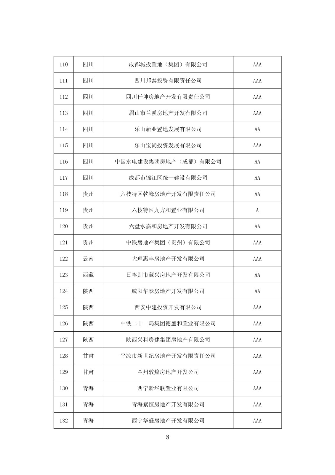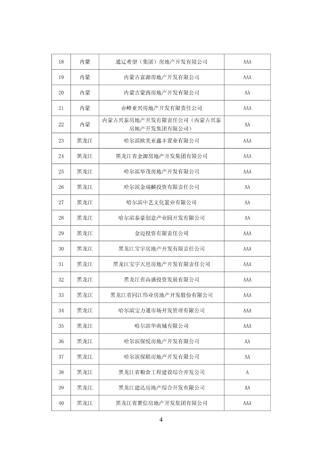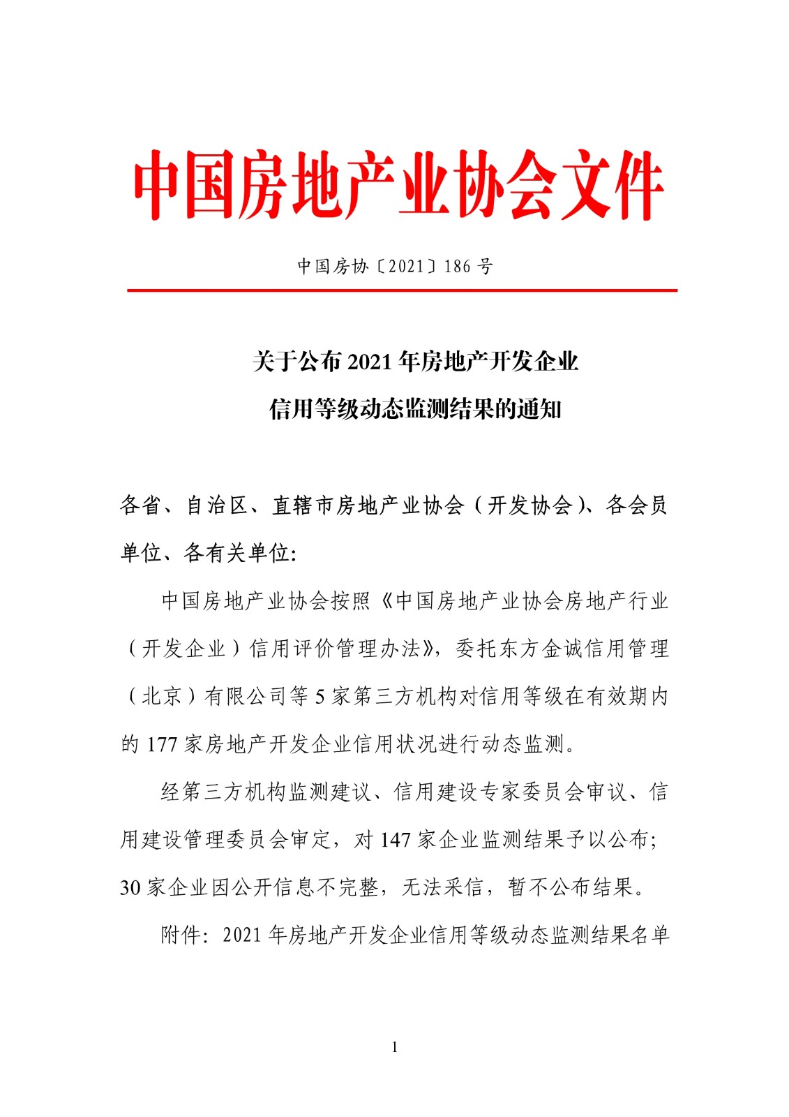 关于公布2021年房地产开发企业信用等级动态监测结果的通知