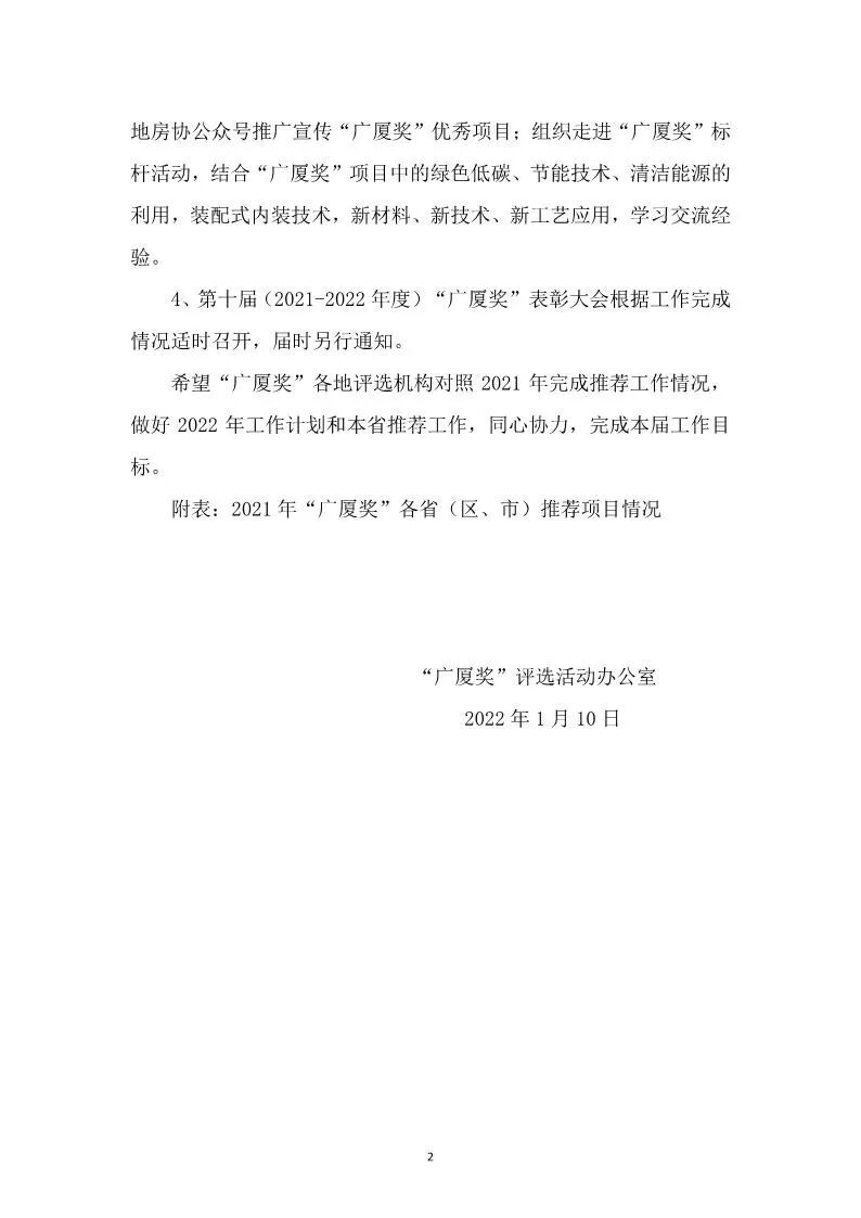 “广厦奖”2022 年工作要点